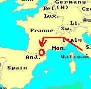 Mais plus étonnant encore, l'analyse génétique vient de montrer qu'il s'agit d'un loup venu non pas d'Espagne, comme on pourrait le croire, mais des Abruzzes en Italie ! Voilà une information qui devrait intéresser au plus haut point notre collègue et ami le professeur Franco Tassi, directeur du parc des Abruzzes, éminent conservationniste et qui fut le remarquable organisateur du troisième colloque européen de cryptozoologie (c'était les 27 et 28 mars 1999 à Rome)... Cela laisse supposer que le loup en question a traversé les Alpes, le sillon rhodanien, le Massif Central, les Cévennes, etc. (voir l'itinéraire probable sur la carte ci-dessus).