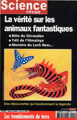 Animaux fantastiques dans Science Revue (juillet 2002)Le magazine trimestriel Science Revue d'août 2002 (figure 1) publie 3 articles sur les "animaux fantastiques" : sans grande imagination, la revue a choisi les vedettes de la cryptozoologie, à savoir la bête du Gévaudan, le yéti et consorts et le monstre du Loch Ness.