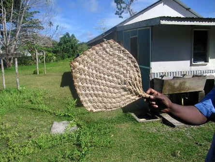 Figure 1 (à gauche) : éventail en feuilles de palmier tressées (photo Jerome Hamlin),
