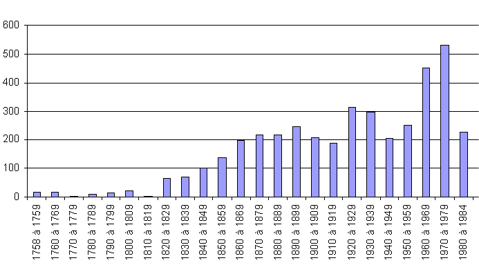 Figure 1 :progression de l'inventaire batrachologique de 1758 à 1985.