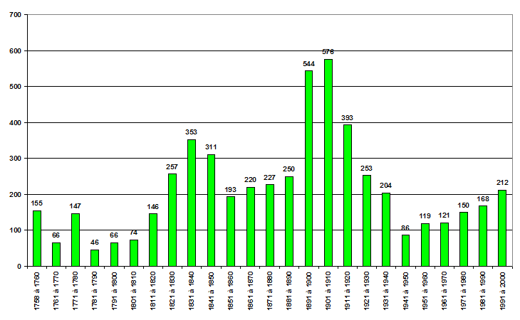 - une chute régulière, voire dramatique, jusqu'en 1950 (voir ci-dessous).