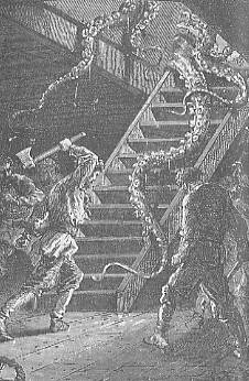 Figure 6 : "le poulpe brandissait la victime comme une plume" (illustration par de Neuville pour Vingt mille lieues sous les mers)