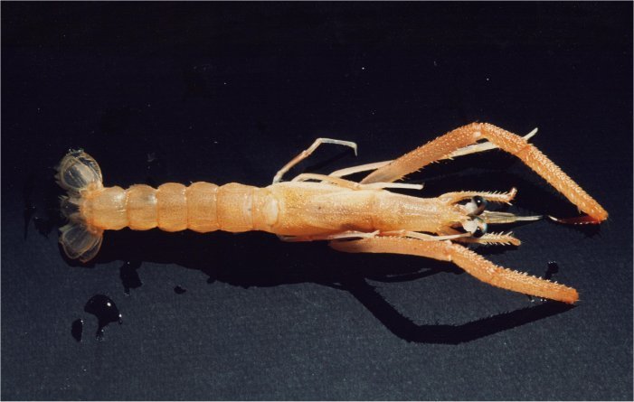 C'est ainsi que neuf autres spécimens de Neoglyphea inopinata (figure 2) furent pêchés entre le 20 et le 24 mars 1976 par les chercheurs du Muséum (Jacques Forest et Michèle de Saint-Laurent), de l'ORSTOM (Alain Crosnier), avec la collaboration d'Edgardo D. Gomez, directeur du Centre des Sciences Marines de Manille. Ces neuf crustacés ont été pris de jour au large de Lubang, à proximité immédiate du lieu de capture du premier spécimen, et à la même profondeur (200 mètres environ) ; ils sont d'une couleur rouge orangé. Enfin, la présence d'autres "fossiles vivants" (notamment de crinoïdes) dans les chalutages s'explique sans doute par une remarquable stabilité des conditions écologiques depuis des temps géologiques.