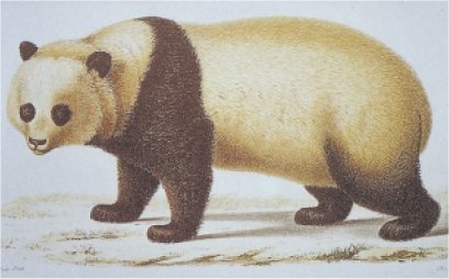1869 : le père Armand David obtient une peau et un crâne. Alphonse Milne-Edwards décrit scientifiquement le grand panda (figure 1).