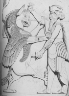 (bas-relief à Persépolis, Iran).Adrienne Mayor (1991) a émis l'hypothèse que le griffon est né de la découverte de squelettes de dinosaures cératopsiens, comme le Protoceratops que l'on trouve fréquemment en Mongolie (figure 2) : son crâne armé d'une sorte de bec recourbé, évoquant celui d'un rapace, a pu en effet donner naissance à cette légende.