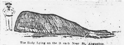 L'enquête d'un médecin naturalisteL'histoire commence le 30 novembre 1896... Ce jour-là, deux jeunes cyclistes, Herbert Cole et Dunham Coretter, découvrirent une énorme charogne à moitié enfouie dans le sable sur une plage située tout près de la station balnéaire de Saint-Augustine (côte est de la Floride). Pour les deux garçons, au regard de la taille de l'épave, il était certain qu'il s'agissait des restes d'une baleine échouée sur la plage ; du reste, un cétacé avait été capturé deux ans auparavant à l'embouchure de la rivière Matanzas, tout à côté (voir carte et figure 4).