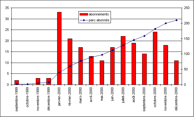 de nouveaux abonnés chaque mois). Il y a près de 210 abonnés en janvier