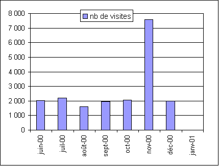 Pour information, le nombre de visiteurs passant par la page d'accueil du site (et donc pris en compte par le compteur qui s'y trouve) est de l'ordre de 2000 par mois (figure 4). Et les habitués ne passent pas nécessairement par la page d'accueil !