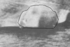On ne peut toutefois pas manquer de remarquer que la tache blanche au centre de la photo ressemble irrésistiblement à la face d'un chien tournée vers l'objectif (on distingue les yeux, la truffe, les oreilles), nageant vers son maître en tenant un bâton dans sa gueule (figure 2).