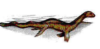 Le "Saurien Océanique" est décrit comme une sorte de grand crocodile entièrement adapté à la vie marine, se déplaçant par ondulations horizontales. Il s'agit peut-être d'un reptile survivant du groupe des thalattosuchiens ou d'un mosasaure attardé. |