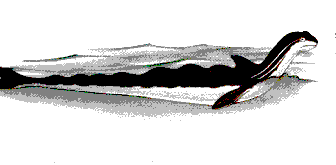 "A une heure de l'après-midi, vu un très grand poisson, avec une tête comme un morse et douze nageoires pareilles à celles d'un globicéphale mais tournées en sens inverse. Le dos avait de 6 à 9 mètres de long ; également une bonne longueur de queue."